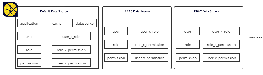 - Default data source: includes management data table and RBAC data table. MatrixAuth has only one default data source. When a business application does not have a data source set, the RBAC table in the default data source is used to serve the business application.